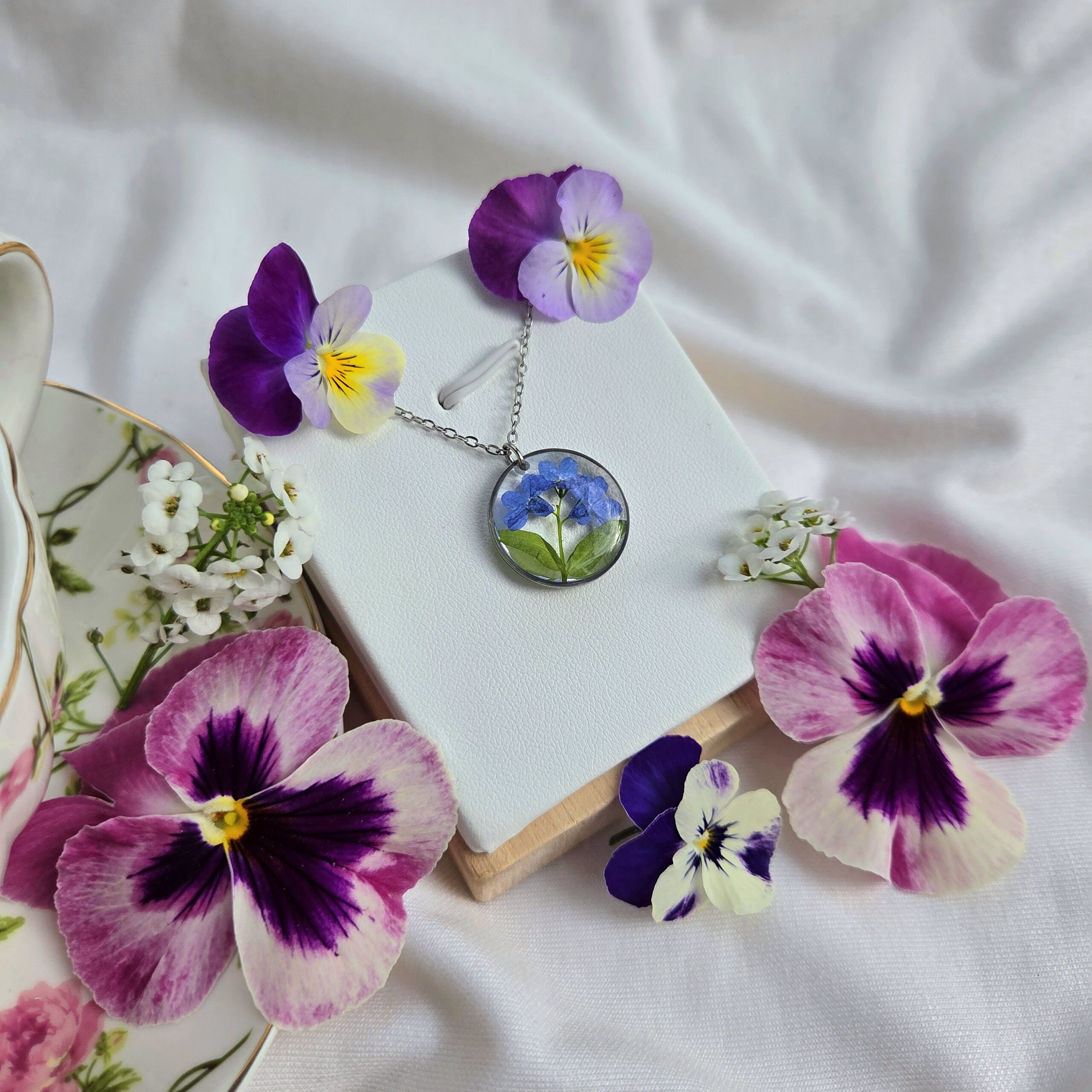Biżuteria wykonana jest z żywicy epoksydowej polskiego producenta Modelarnia24, własnoręcznie zasuszonych kwiatów oraz wykończona elementami ze stali chirurgicznej (304 i 316L).