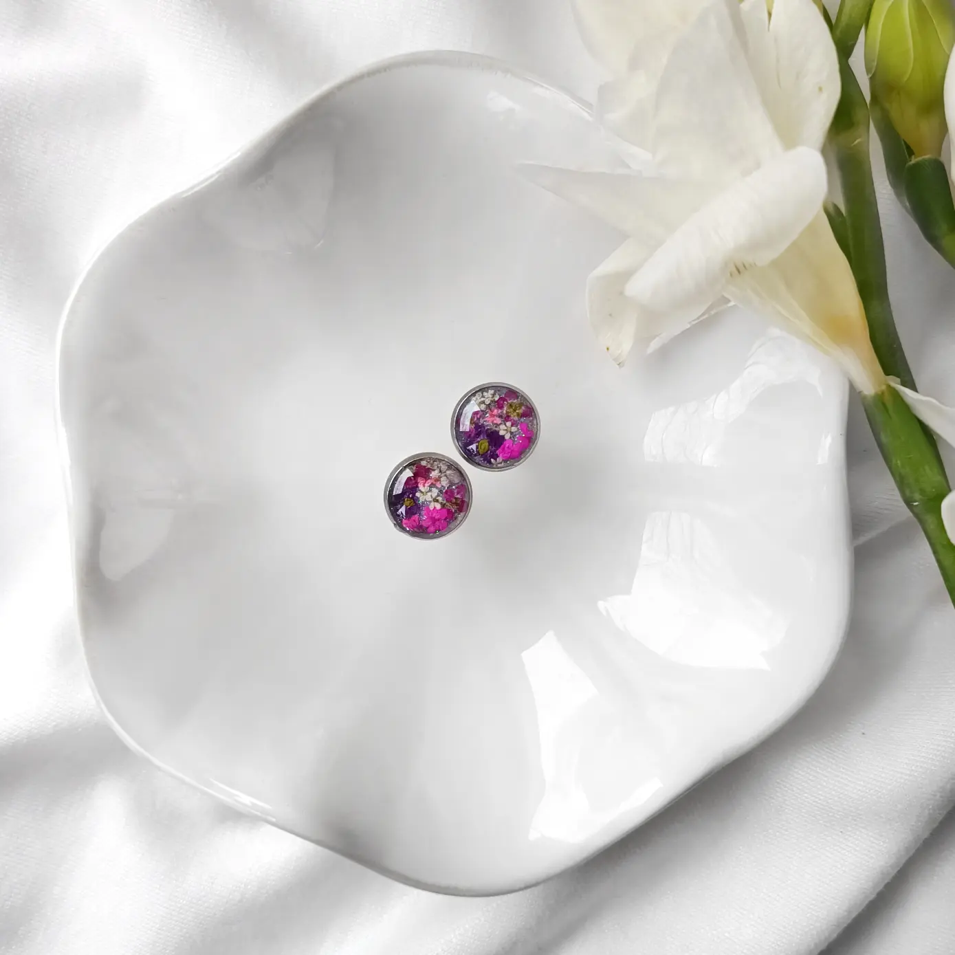 Biżuteria wykonana jest z żywicy epoksydowej polskiego producenta Modelarnia24, własnoręcznie zasuszonych kwiatów oraz wykończona elementami ze stali chirurgicznej (304 i 316L).