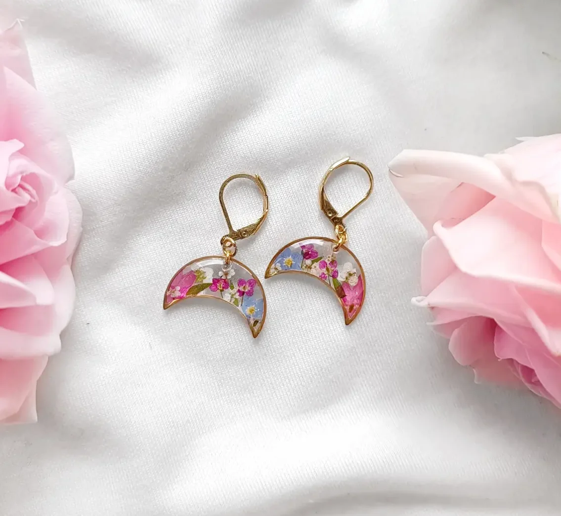 Biżuteria wykonana jest z żywicy epoksydowej polskiego producenta Modelarnia24, własnoręcznie zasuszonych kwiatów oraz wykończona elementami ze stali chirurgicznej (304 i 316L).