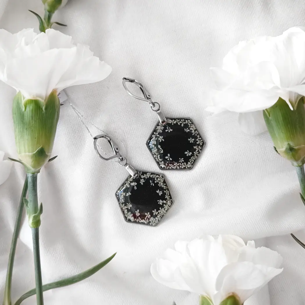 Kolczyki wiszące z żywicy epoksydowej z zatopionymi kwiatami. Stylowy i trwały dodatek, który podkreśli Twój indywidualny look.