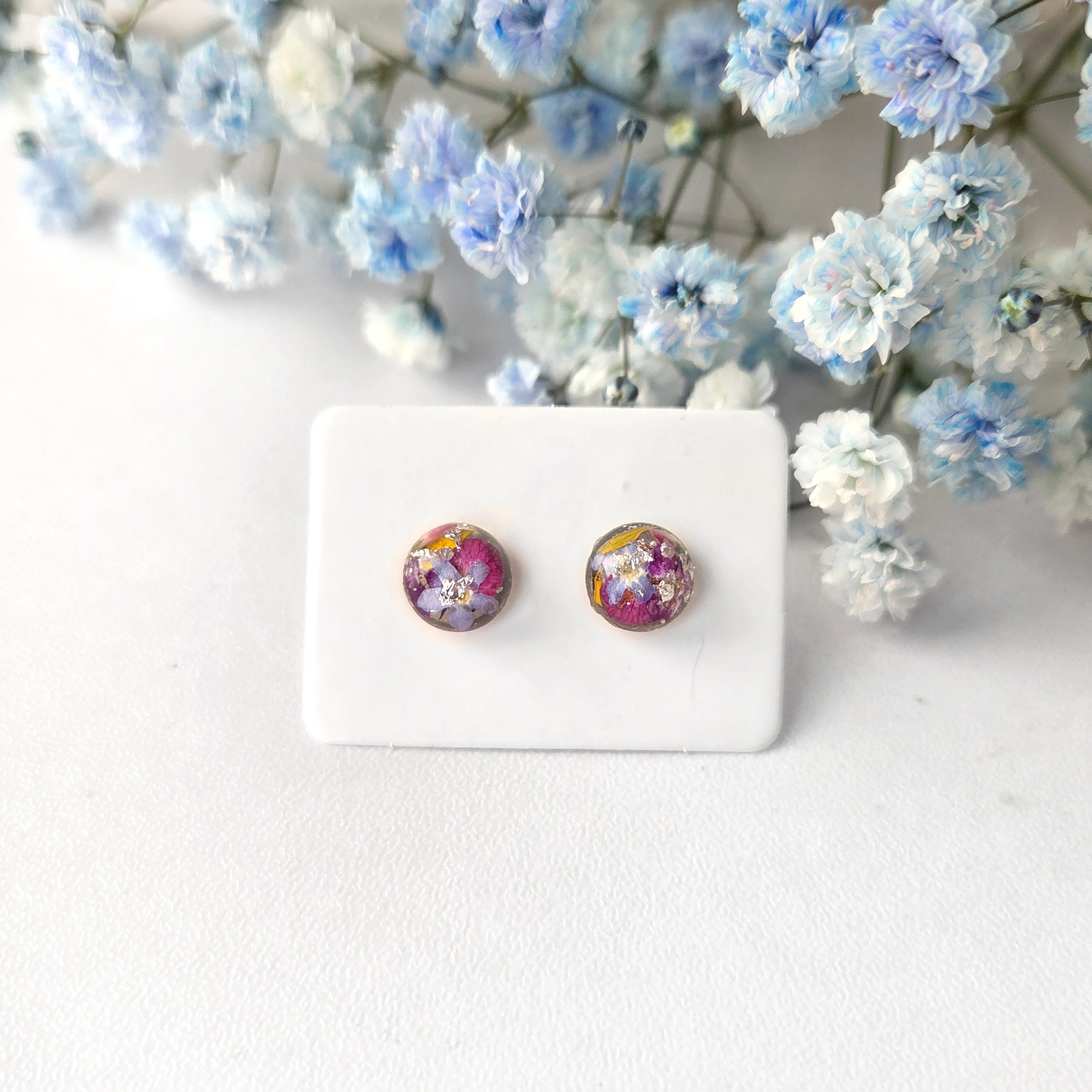 Kolczyki wkrętki z suszonymi kwiatami w żywicy. Kolczyki w stali chirurgicznej. Unikatowe rękodzieło z dusza.