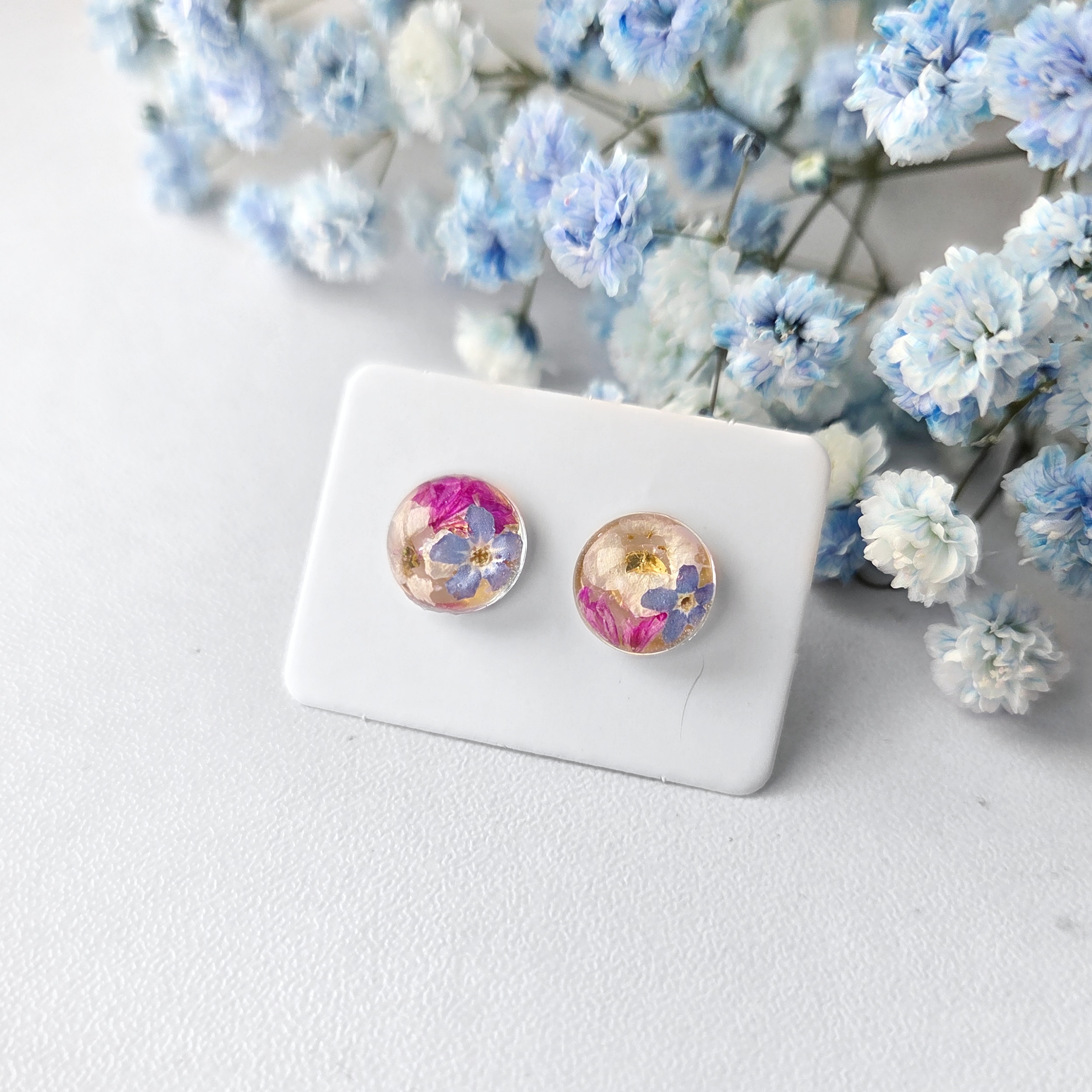 Kolczyki wkrętki z suszonymi kwiatami w żywicy. Kolczyki w stali chirurgicznej. Unikatowe rękodzieło z dusza.