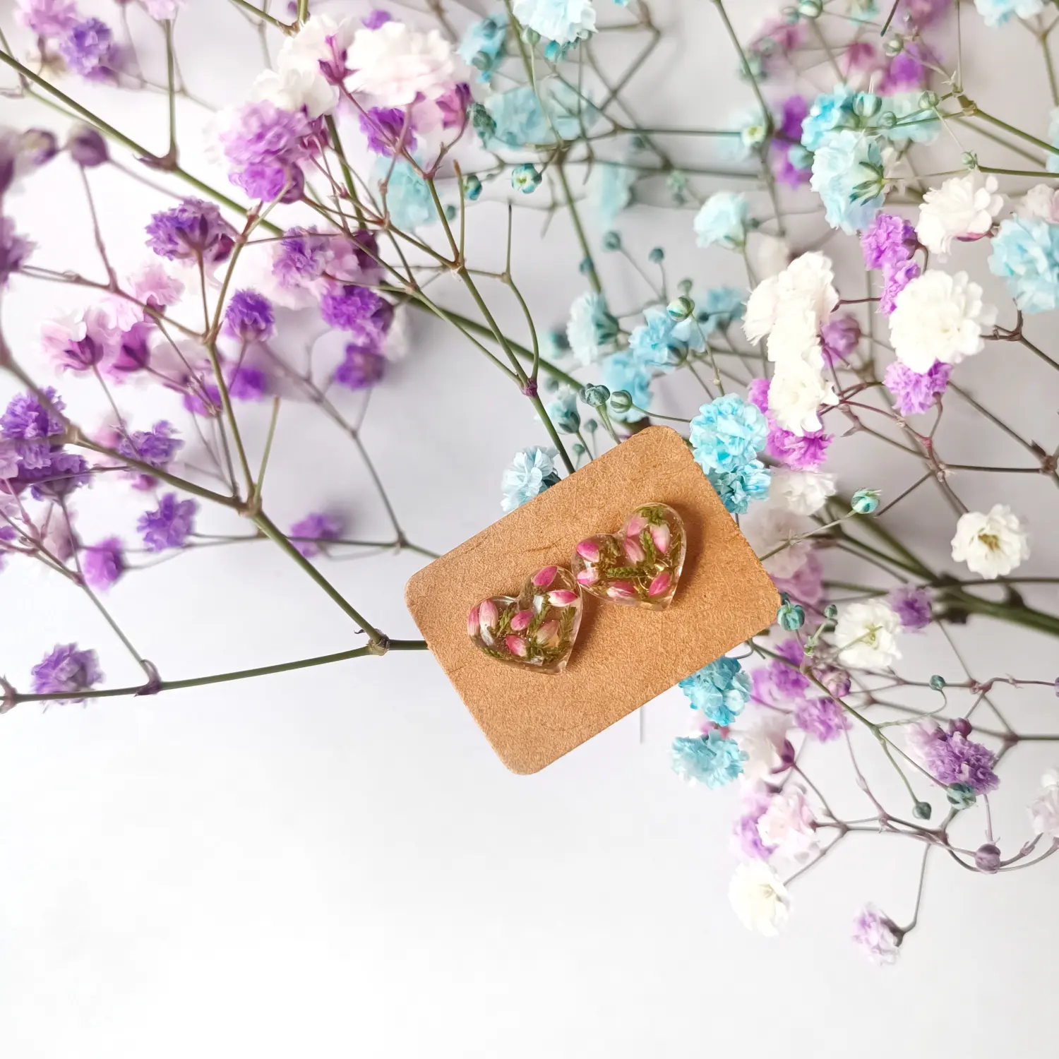 Kolczyki z żywicy z suszonym wrzosem. Unikalna biżuteria handmade, która zachwyca naturalnym pięknem i rękodzielniczym wykonaniem.