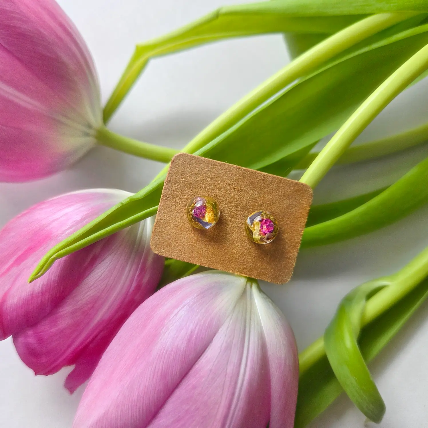 Biżuteria wykonana jest z żywicy epoksydowej polskiego producenta Modelarnia24, własnoręcznie zasuszonych kwiatów oraz wykończona elementami ze stali chirurgicznej (304 i 316L).