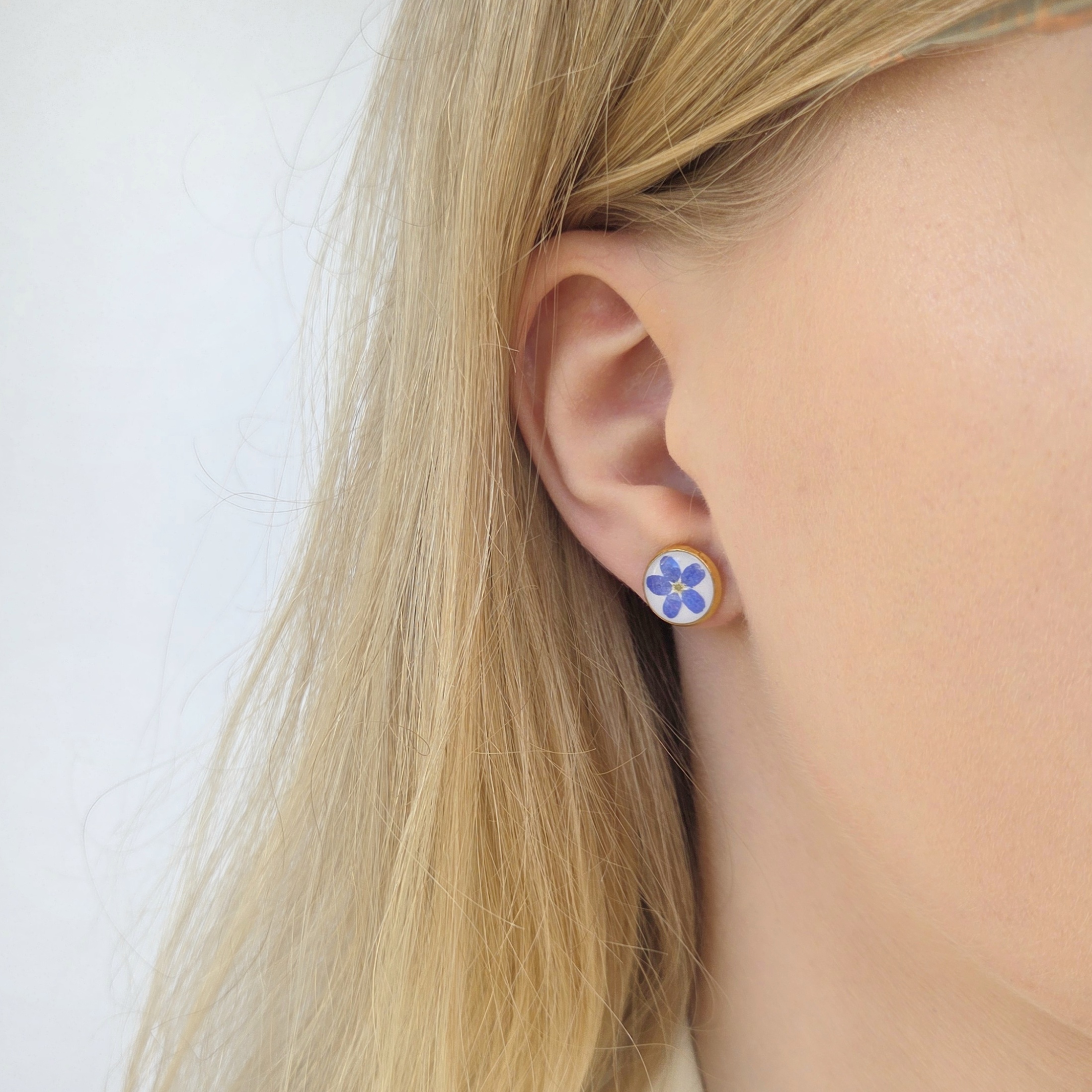 Kolczyki sztyfty / wkrętki z niezapominajkami zatopionymi w żywicy. Prawdziwe niezapominajki w biżuterii. Kolczyki w niebieskim kolorze.