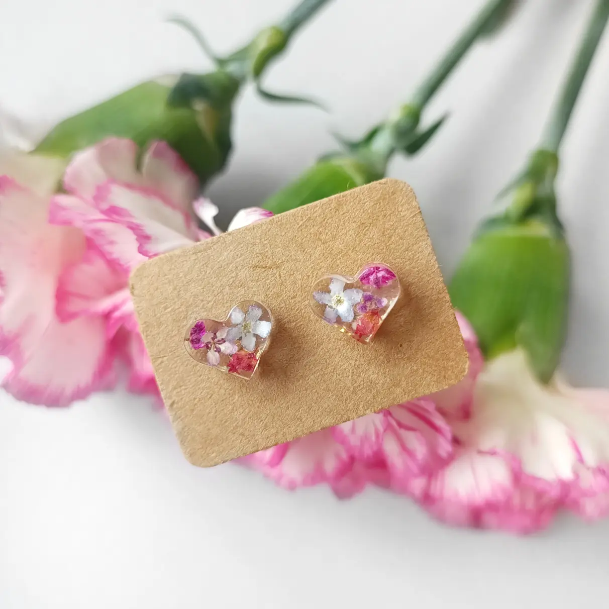 Biżuteria wykonana jest z żywicy epoksydowej polskiego producenta Modelarnia24, własnoręcznie zasuszonych kwiatów oraz wykończona elementami ze stali chirurgicznej (304 i 316L).